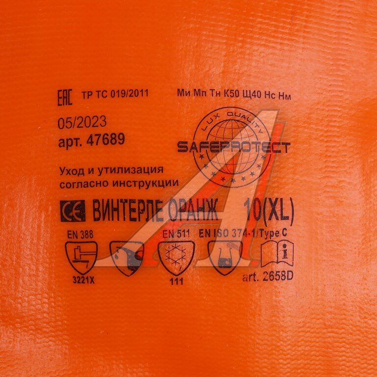 Перчатки ПВХ обливные утепленные р.10 ВИНТЕРЛЕ ОРАНЖ SAFEPROTECT