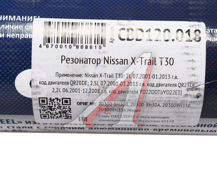 Резонатор NISSAN X-Trail (01-13) нержавеющая сталь CBD