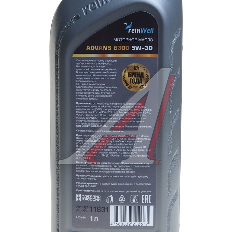 | Артикулы | REINWELL 5W30 |