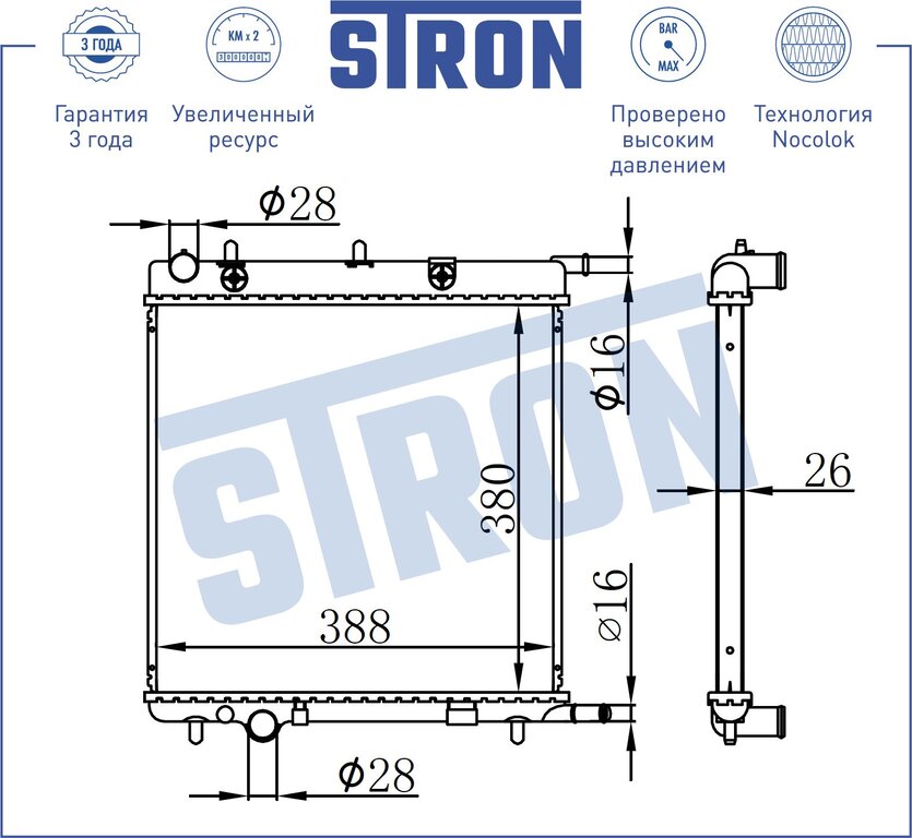 Радиатор CITROEN C2 системы охлаждения STRON