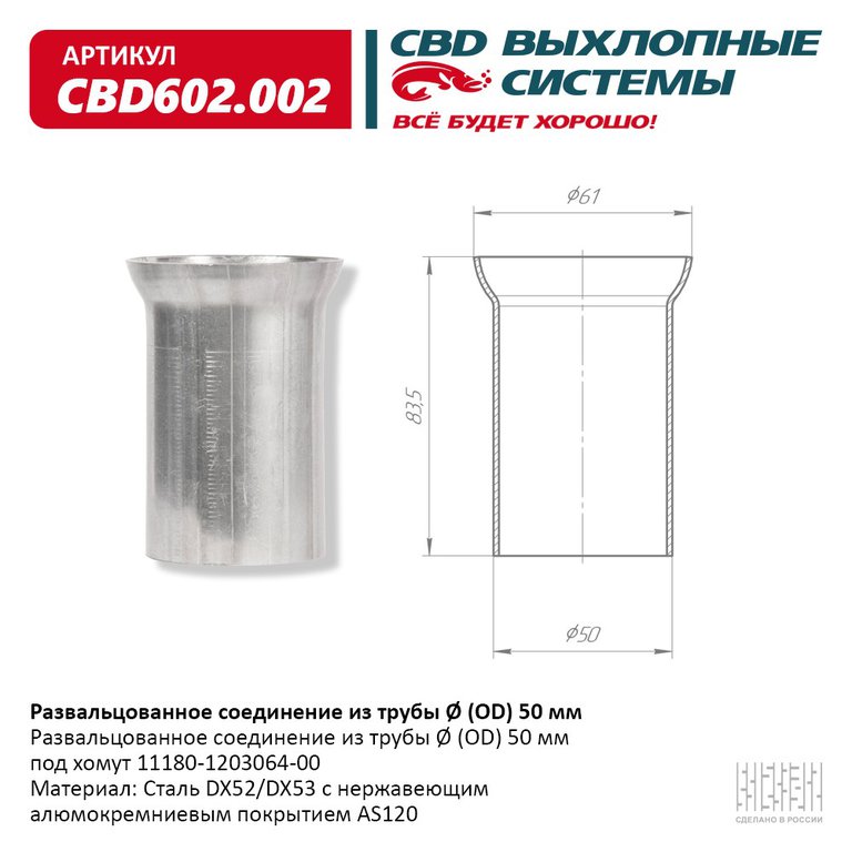Труба-вставка глушителя (внешн.d=50мм) CBD