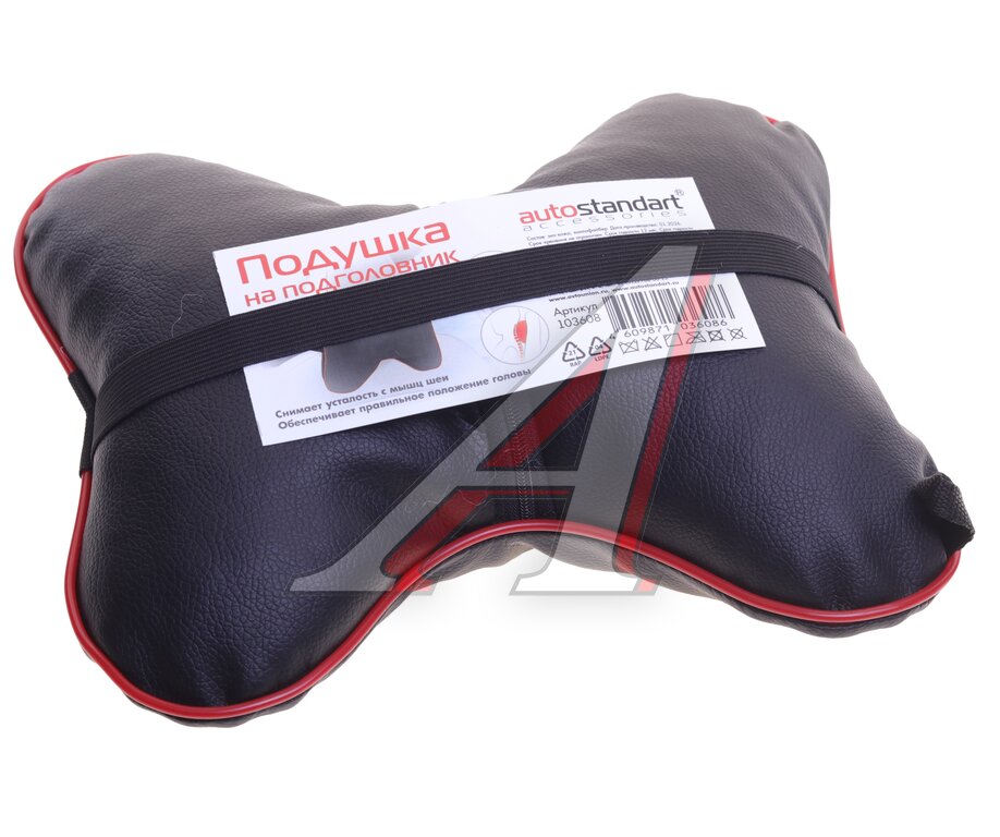 Подушка на подголовник кожзам 26х22см черная AUTOSTANDART