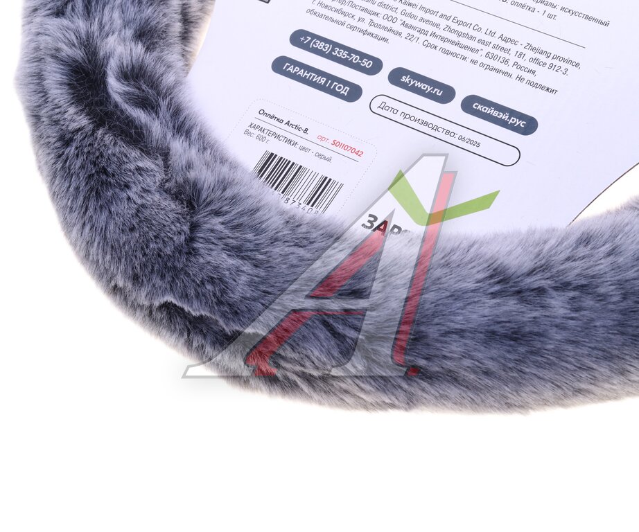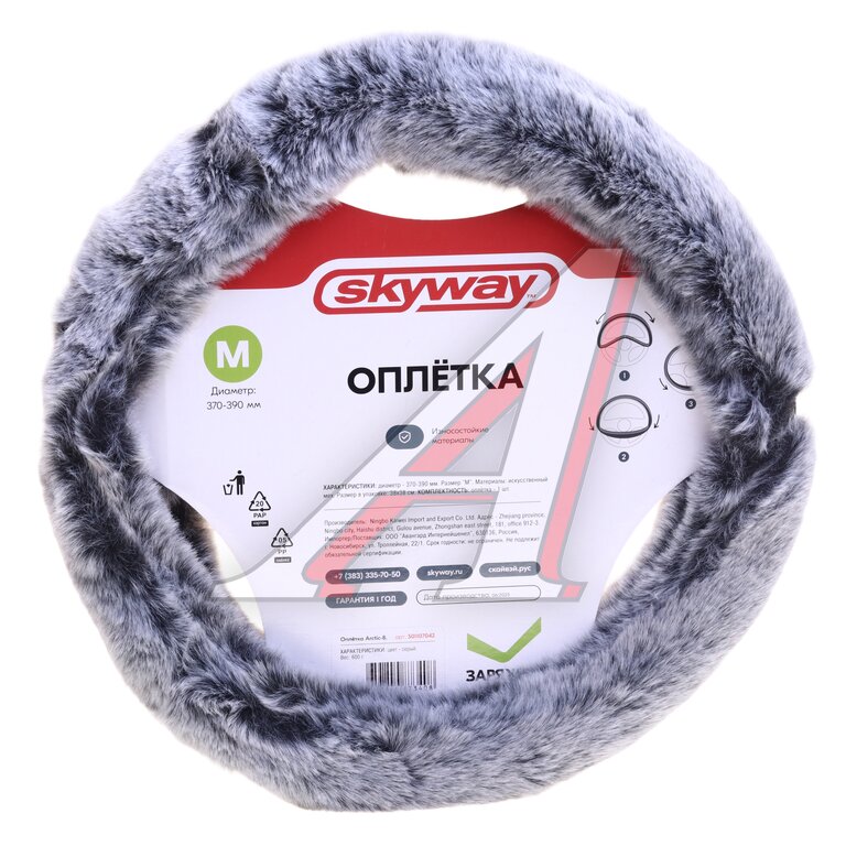 Оплетка руля (M) 38-39см искусственный мех серая Arctic-8 SKYWAY