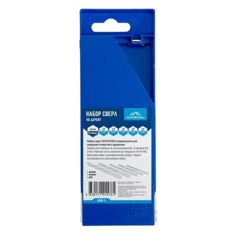 Набор сверл по дереву 4.0-10.0мм (5шт.) VERTEXTOOLS