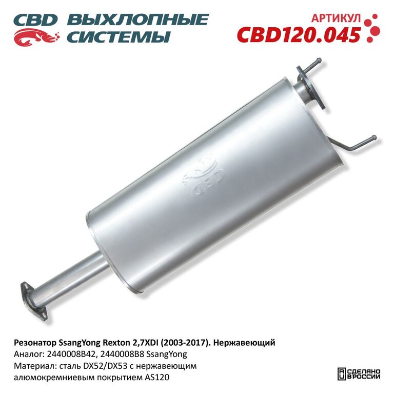 Глушитель SSANGYONG Rexton (02-) промежуточный (резонатор) CBD