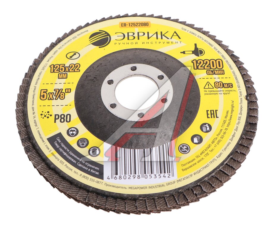 Круг лепестковый торцевой 125х22.2мм Р80 ЭВРИКА
