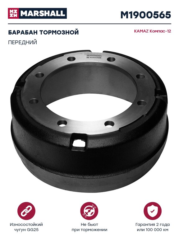 Барабан тормозной JAC N120 (20-) КАМАЗ Компас-12 передний MARSHALL