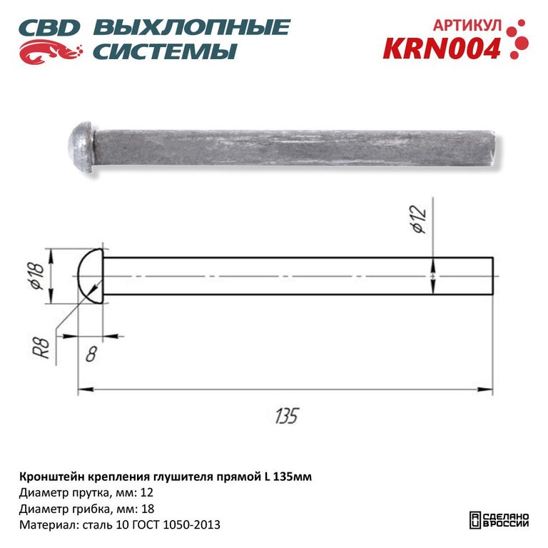- Материал: Сталь 10 ГОСТ 1050-2013