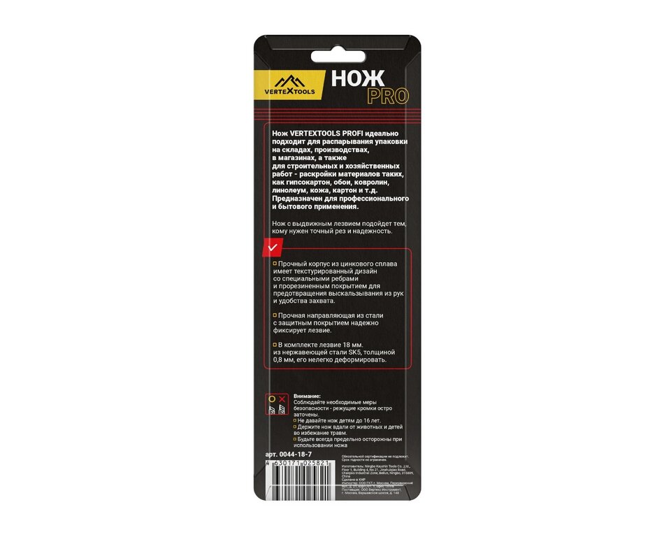 Нож 18мм с сегментированным лезвием VERTEXTOOLS