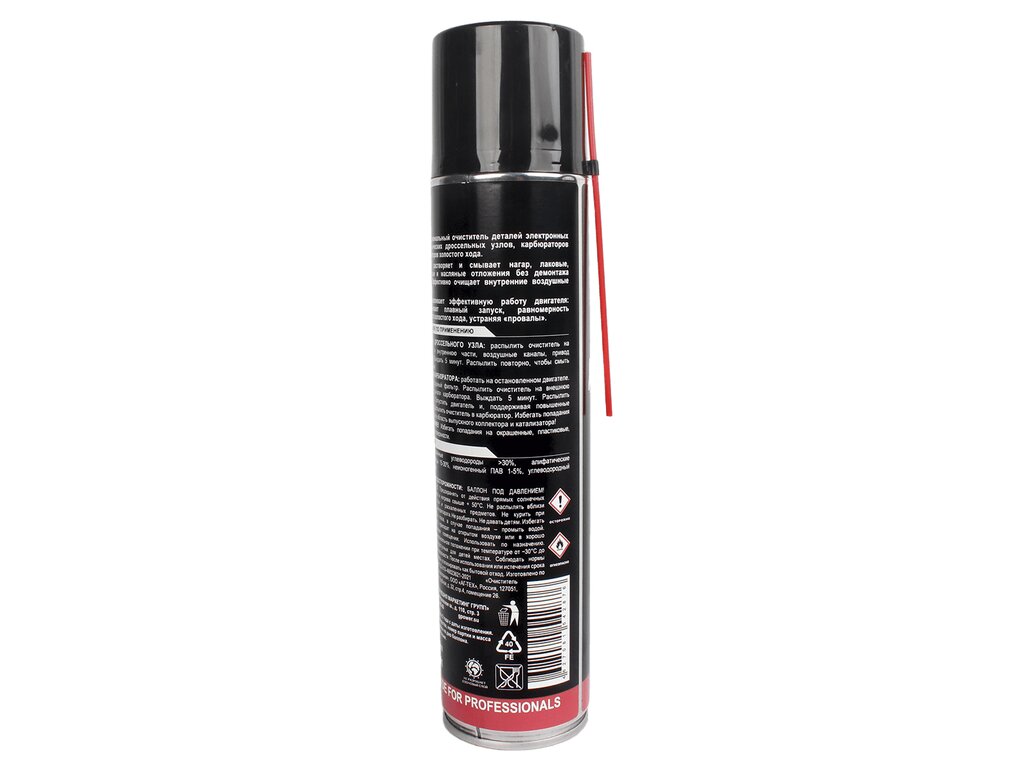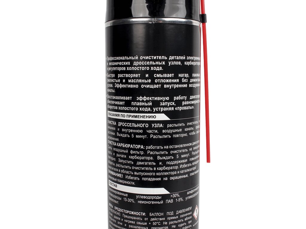 Назначение: очистка деталей электронных и механических дроссельных узлов, карбюраторов и регуляторов холостого хода.Применение: растворяет и смывает нагар, лаковые, смолистые и масляные отложения без демонтажа узлов. Эффективно очищает внутренние воздушные каналы.