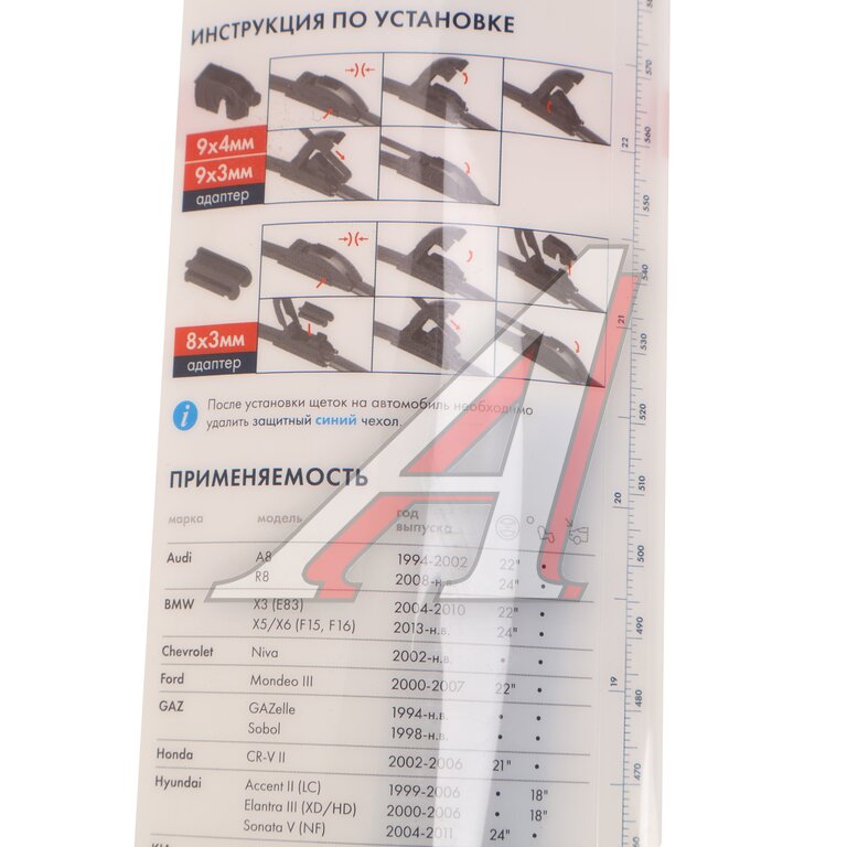 Щетка стеклоочистителя 500мм бескаркасная (крепление крючок узкий+широкий) AVTOPRIBOR