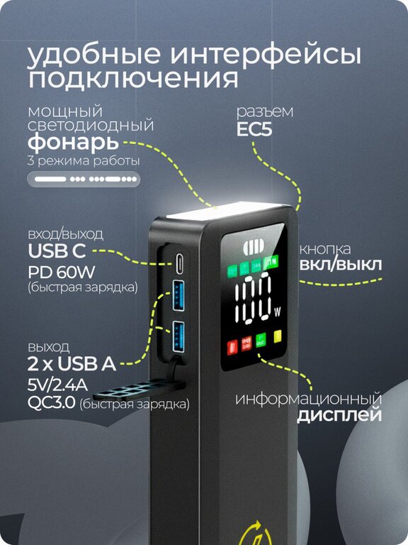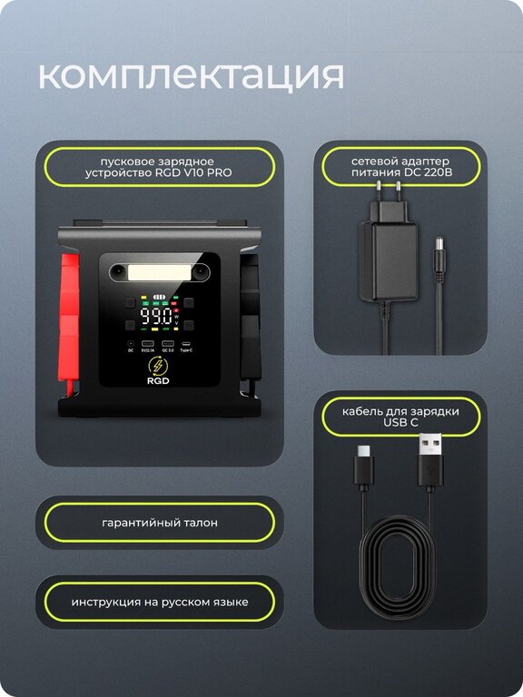 Устройство пусковое 12-15.4V 7100A 29000мА/ч (power bank) RGD