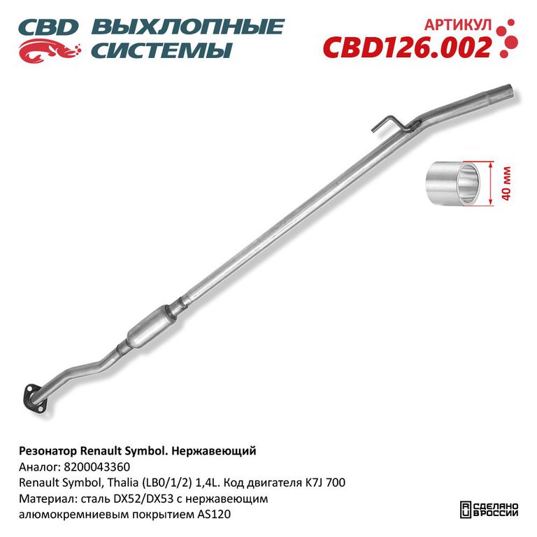 Глушитель RENAULT Symbol (00-) средняя часть CBD