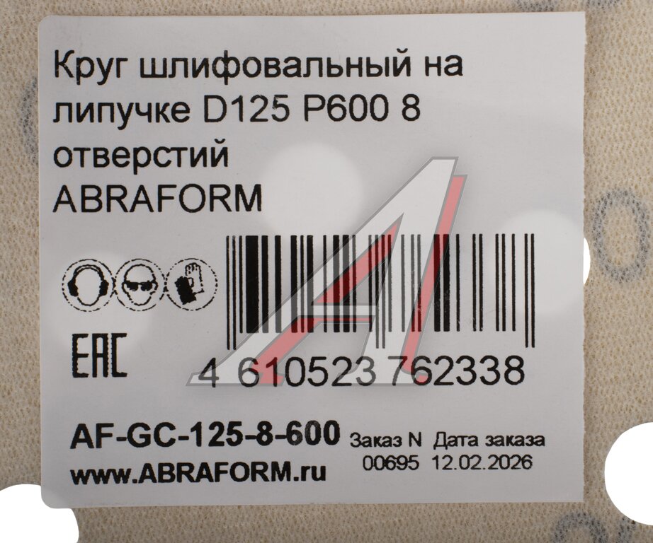 Круг шлифовальный на липучке D125 P600 8 отверстий ABRAFORM