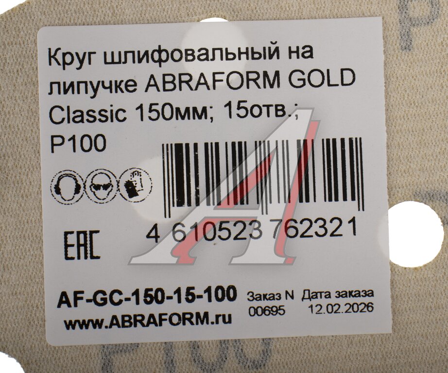 Круг шлифовальный на липучке D150 P100 15 отверстий ABRAFORM