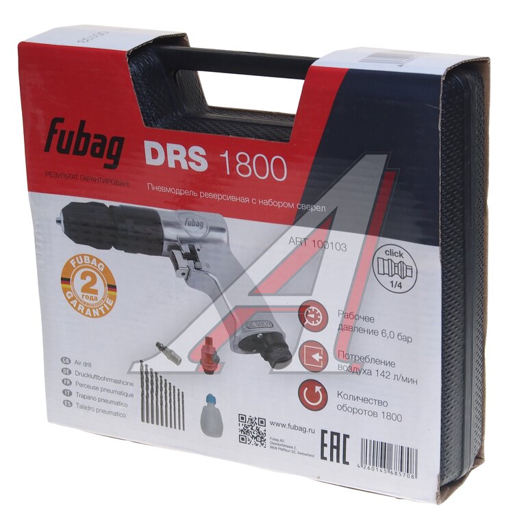 Дрель пневматическая 1800об/мин. 142л/мин реверсивная FUBAG