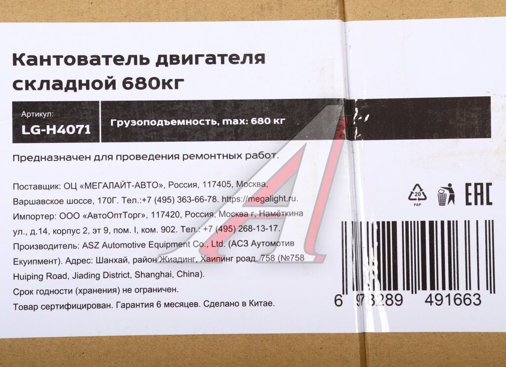 Кантователь двигателя 680кг складной LIGE