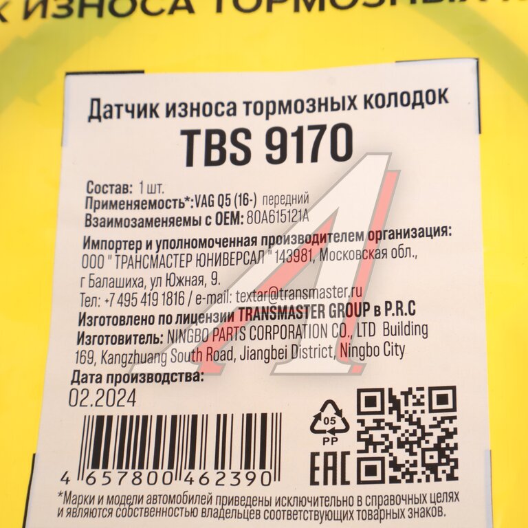 Датчик износа тормозных колодок AUDI Q5 (12-) передний TRANSMASTER