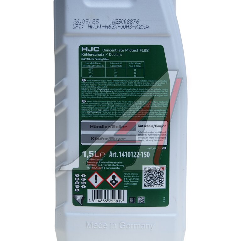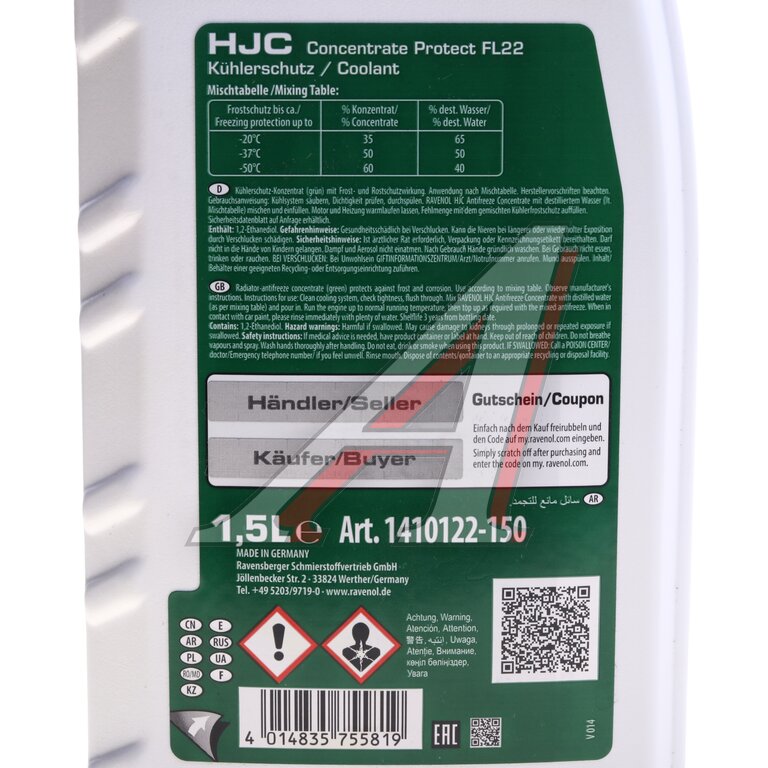 Антифриз зеленый Concentrate 1.5л HJC Protect FL22 RAVENOL