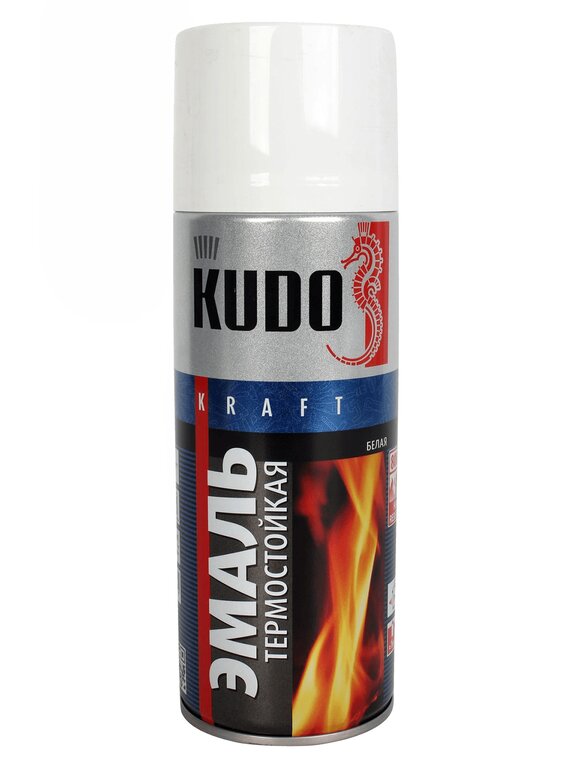 Краска термостойкая белая аэрозоль 520г KUDO