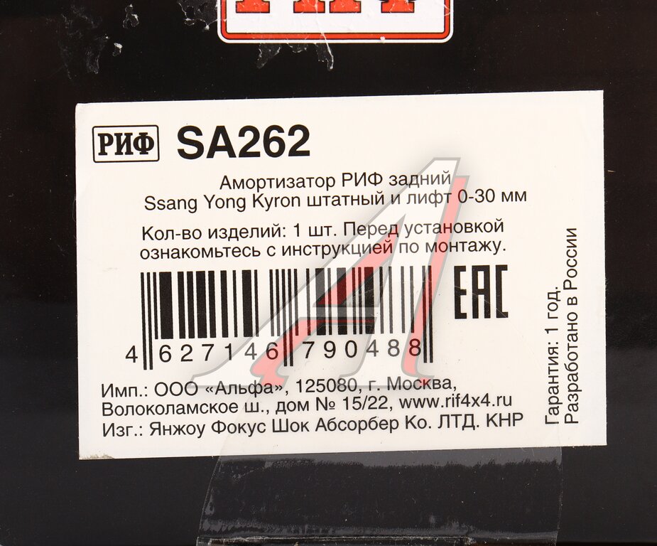 Амортизатор SSANGYONG Kyron задний (штатный лифт 0-30мм) РИФ