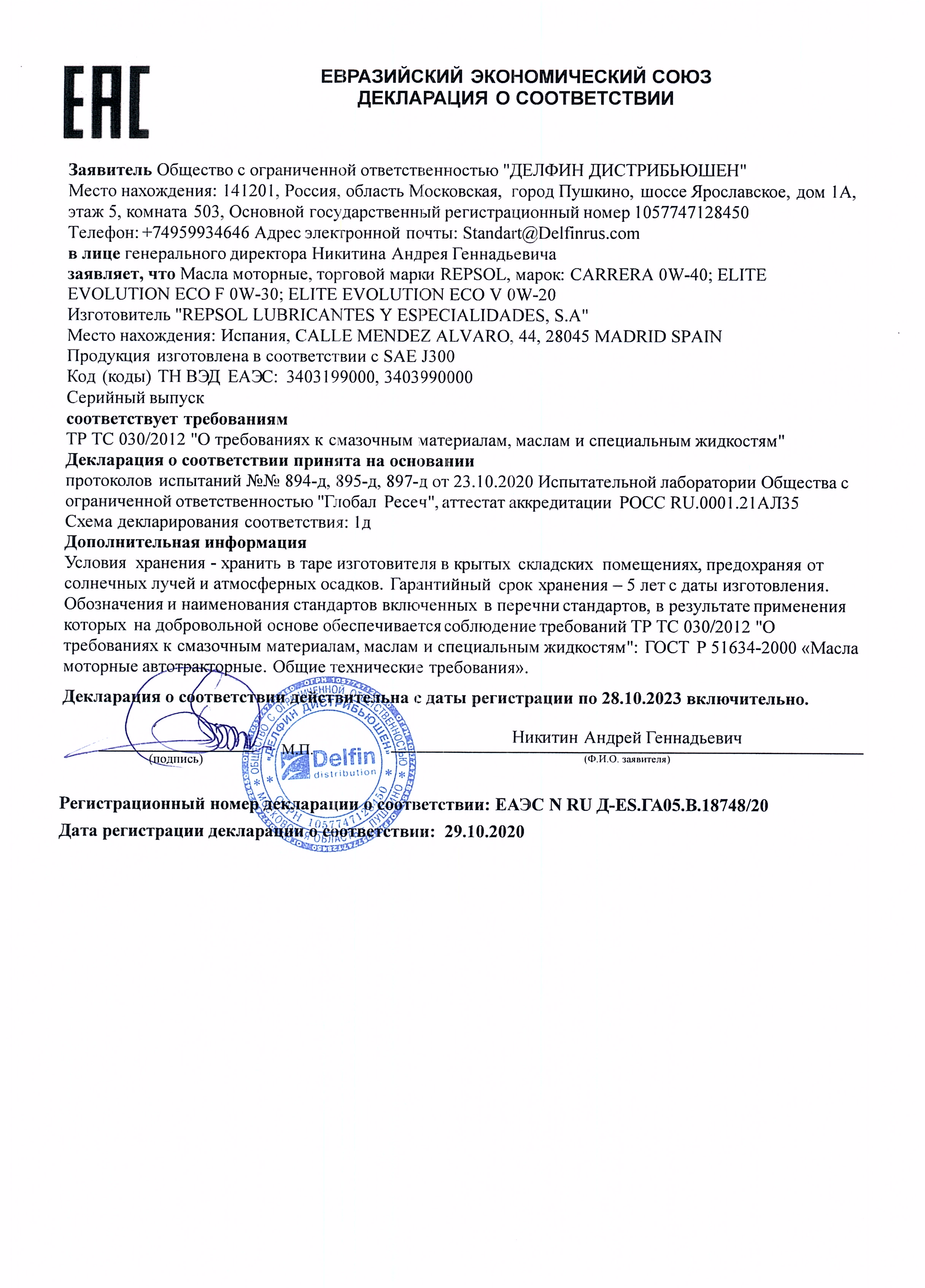 | Артикулы | REPSOL 0W20 |