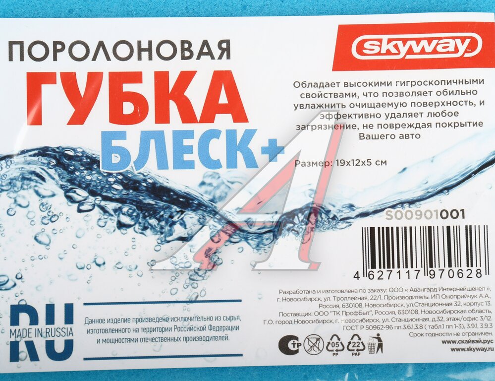 Губка для мойки автомобиля Блеск+ SKYWAY