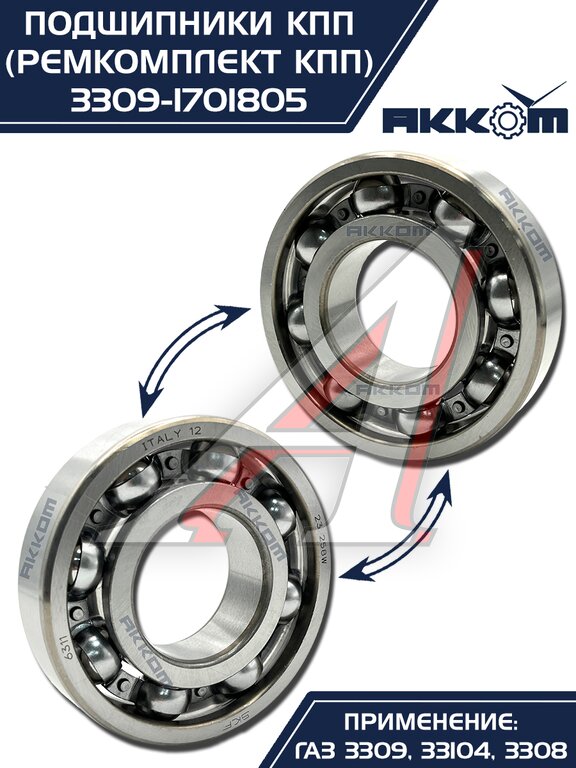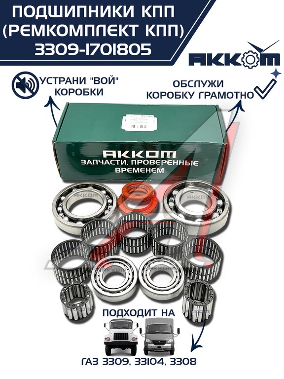 Ремкомплект ГАЗ-3309, 33104 КПП (подшипники, прокладки, сальники) АККОМ