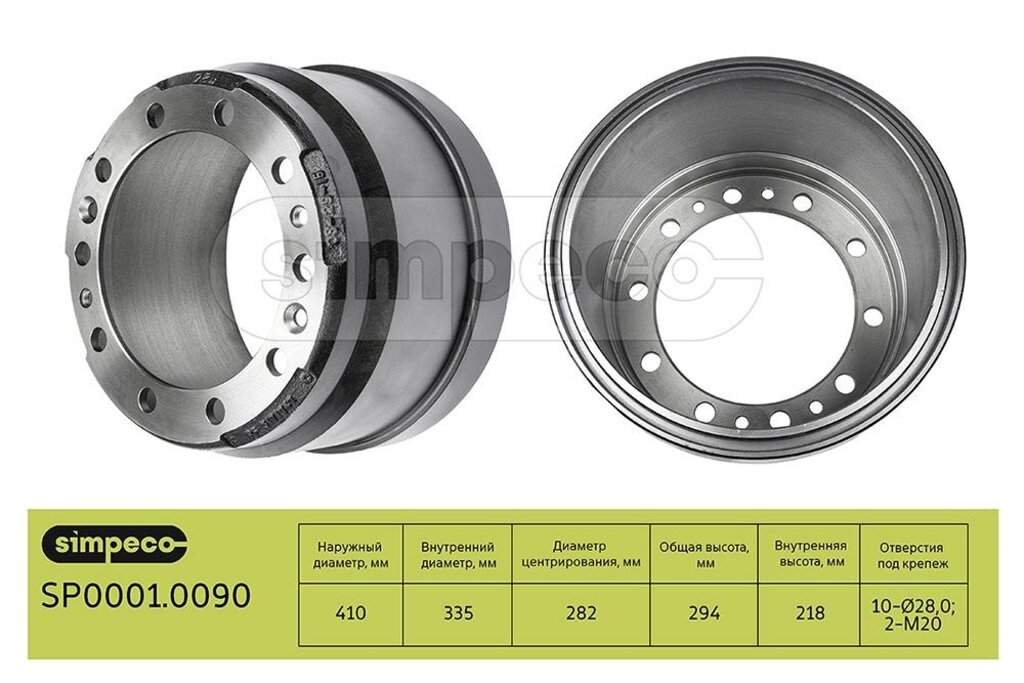 Барабан тормозной VOLVO FH задний (410х200х294) (1шт.) SIMPECO