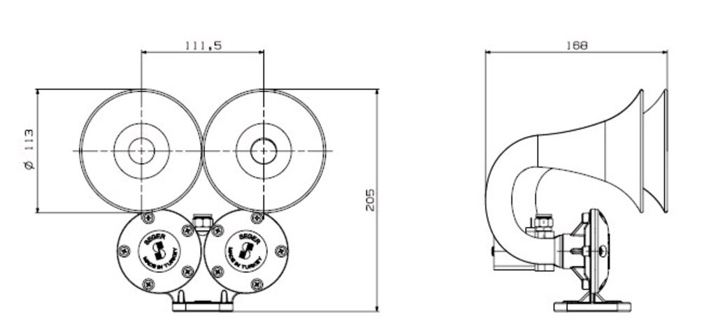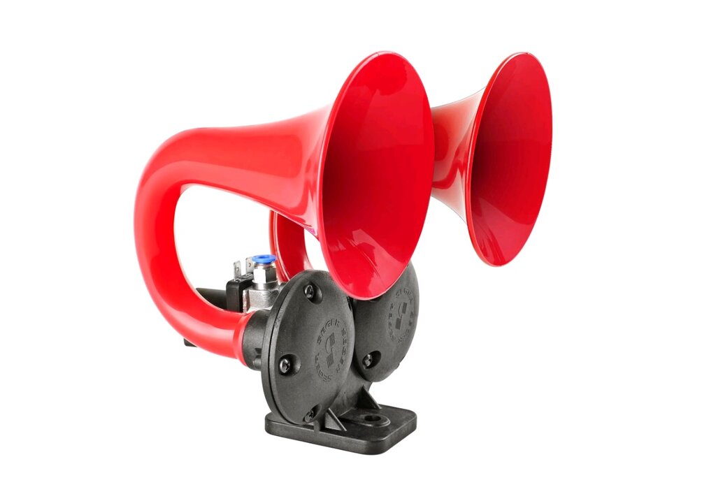 Сигнал звуковой 12V воздушный 2-х рожковый изогнутый красный SEGER
