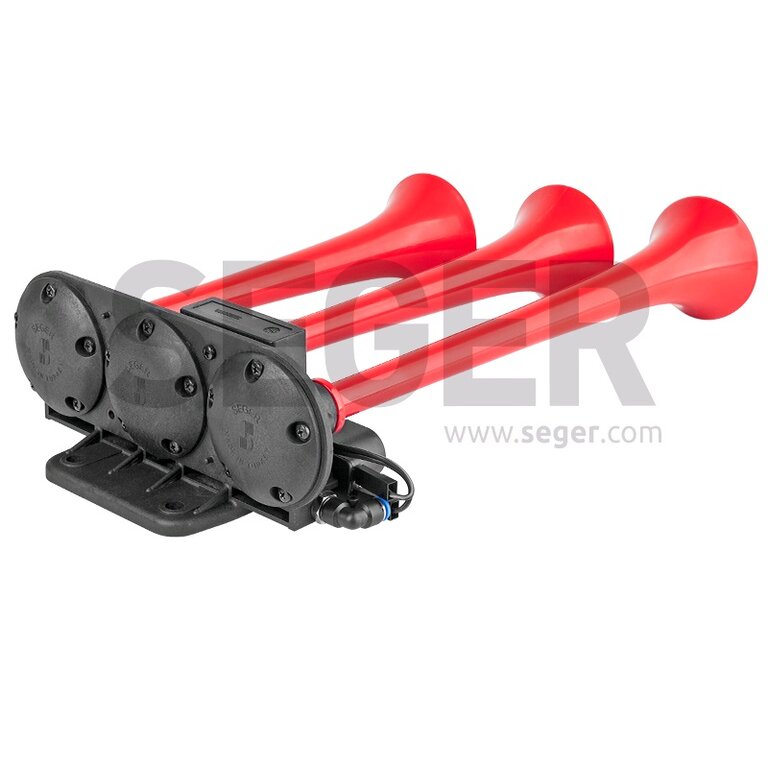 Сигнал звуковой 12V воздушный 3-х рожковый красный (мелодийный) SEGER