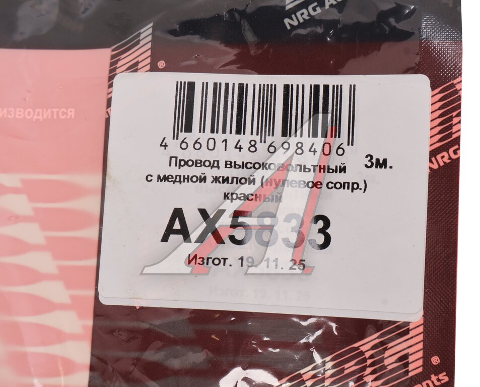 Провод высоковольтный с нулевым сопротивлением (медная жила) 3м. красный CARGEN
