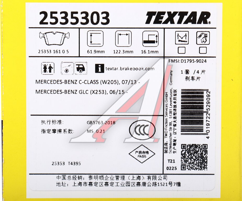 Колодки тормозные MERCEDES C (W205) задние (4шт.) TEXTAR