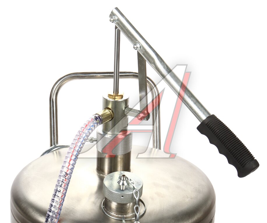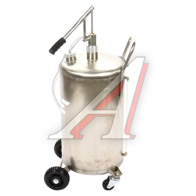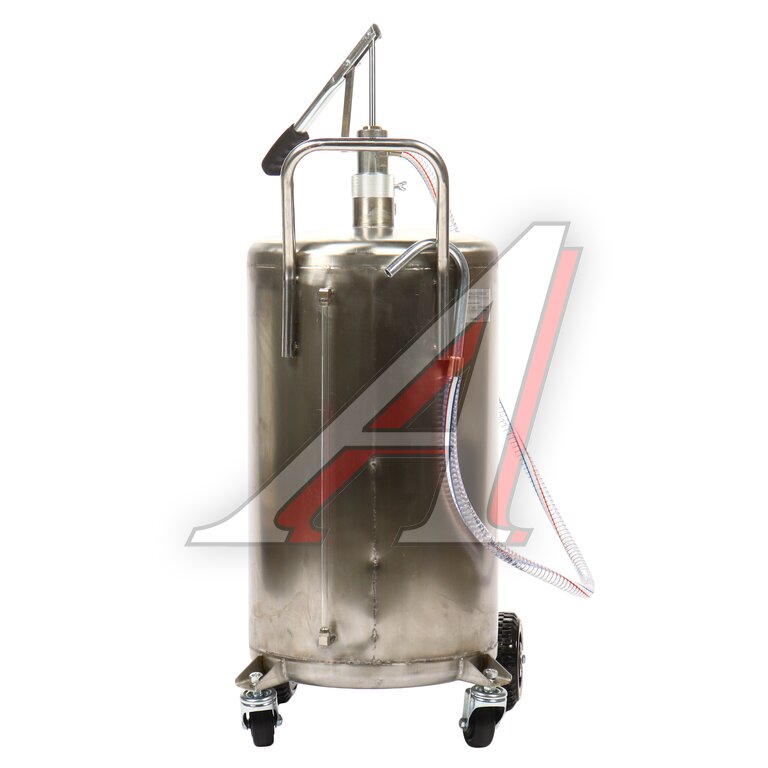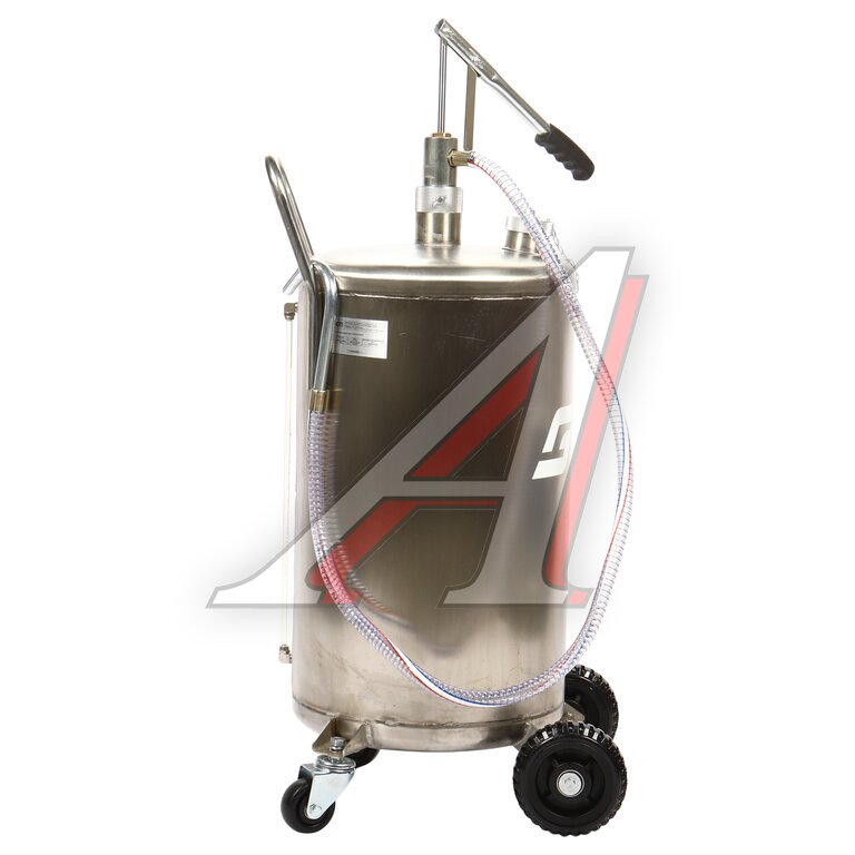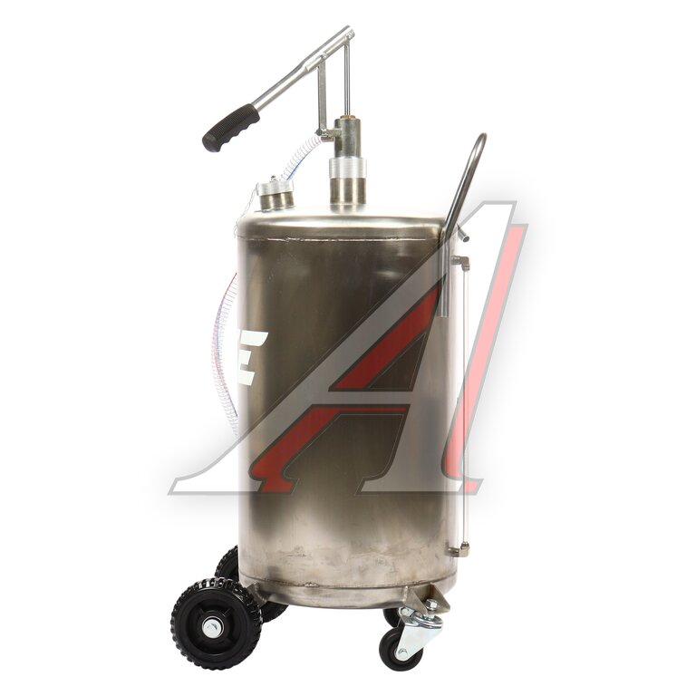Установка для подачи масла GTE-T14151 с ручным приводом представляет собой стальную емкость объемом 70 л, c ручкой для удобства перемещения в помещении автосервиса, оборудована ручным насосом, который создает давление, необходимое для подачи масла и сходных материалов.