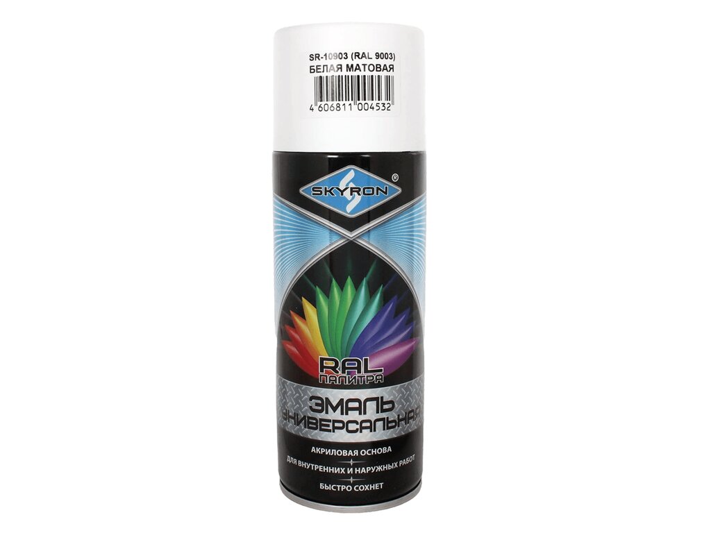 Краска белая матовая аэрозоль 520мл RAL 9003 акриловая SKYRON
