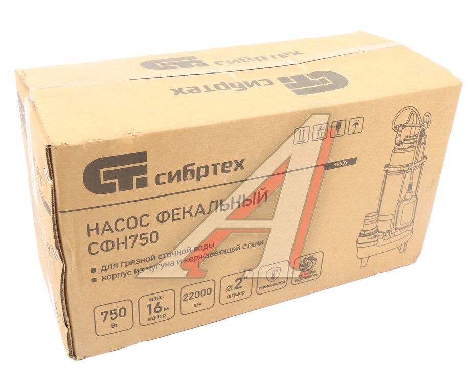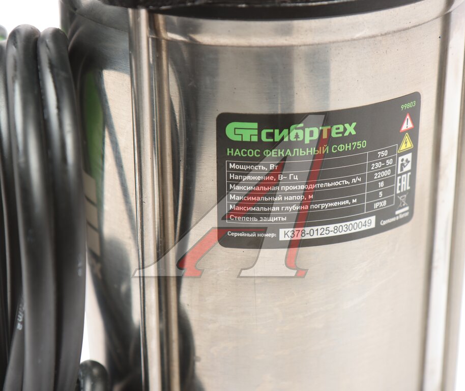 Насос погружной фекальный 750Вт 366л/мин глубина погружения 5м СИБРТЕХ