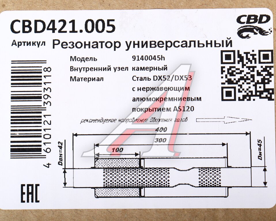 Резонатор универсальный d=45, L=400мм CBD