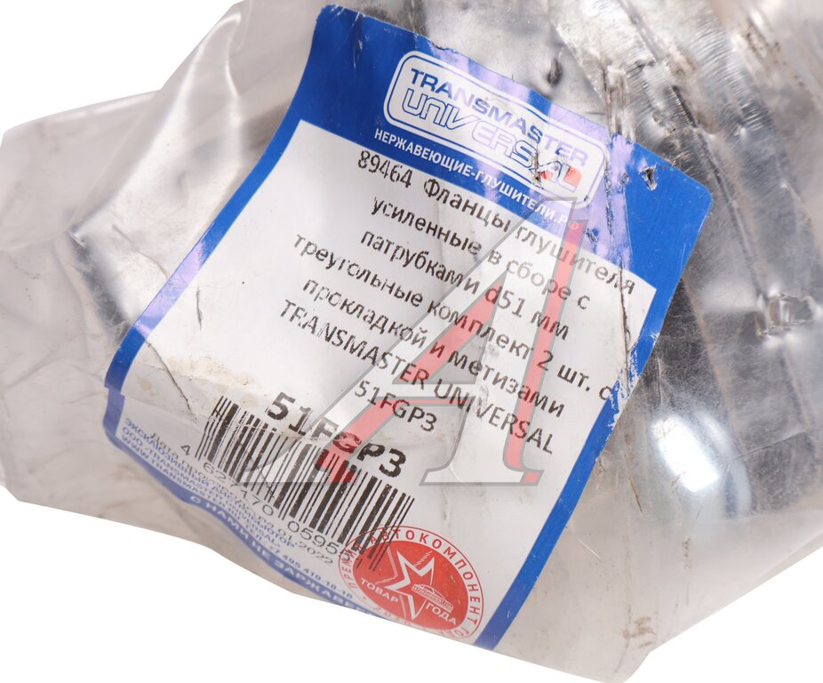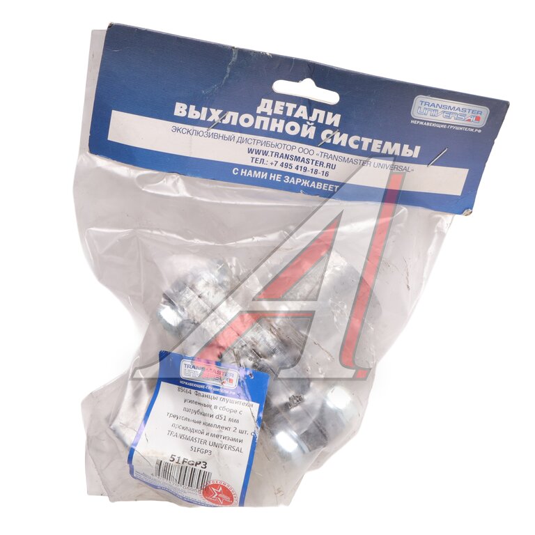 Фланец трубы глушителя d=51мм (прокладка, комплект крепежа, патрубки) треугольный TRANSMASTER