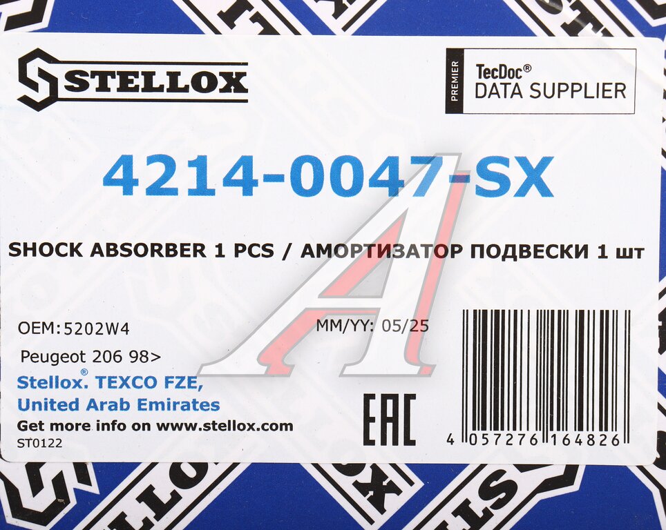 Амортизатор PEUGEOT 206, Partner CITROEN Berlingo передний левый STELLOX