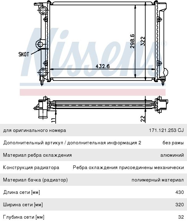 Радиатор VW Passat, Polo МКПП NISSENS