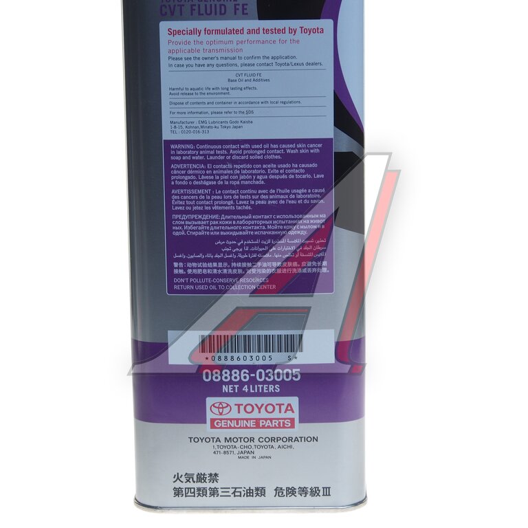 Масло трансмиссионное TOYOTA Genuine CVT Fluid FE 4л OE
