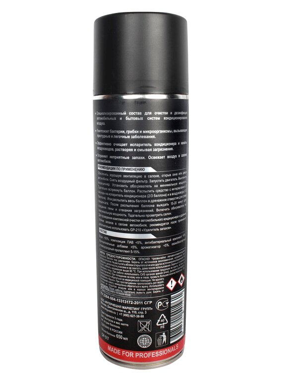 Назначение: очистка дезинфекция автомобильных и бытовых систем кондиционированияПрименение: уничтожает бактерии, грибки и микроорганизмы, очищает испаритель кондиционера и каналы, растворяя загрязнения, устраняет неприятные запахи
