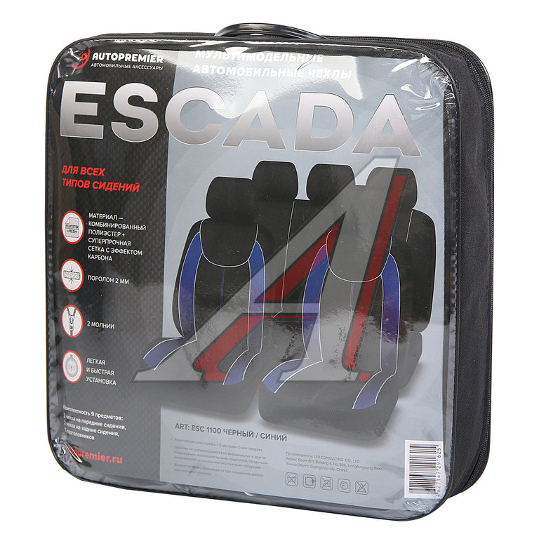 Авточехлы универсальные полиэстер-карбон черно-синие (11 предм.) Escada PREMIER