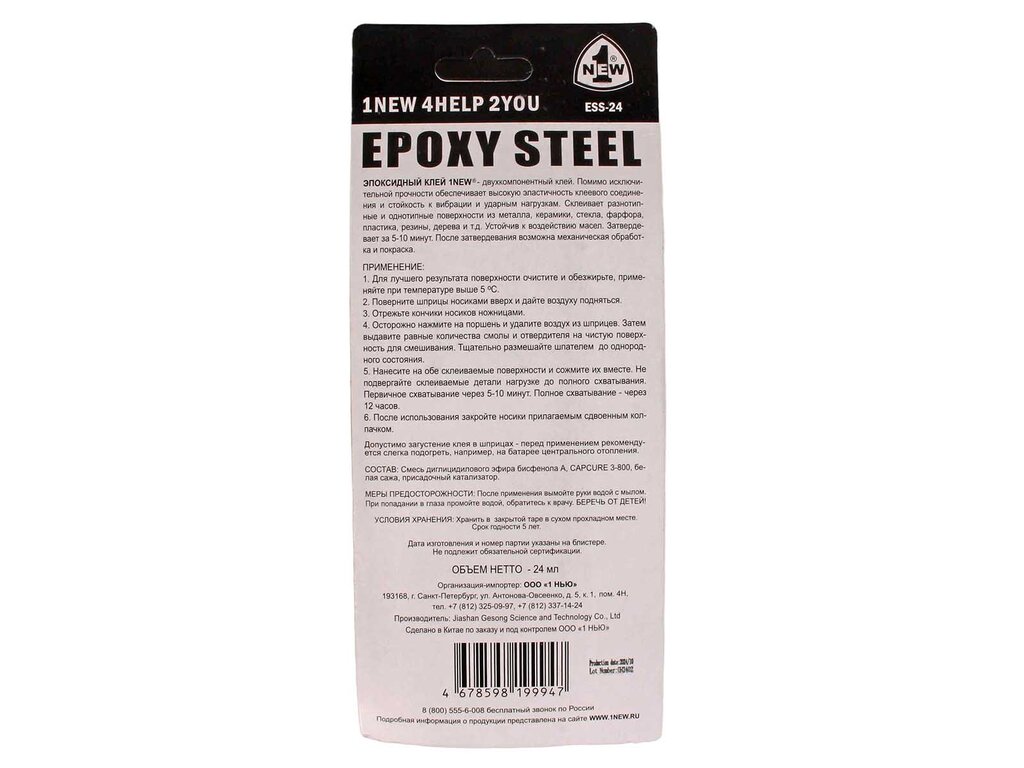 Клей эпоксидный двухкомпонентный черный 24мл шприц 1NEW