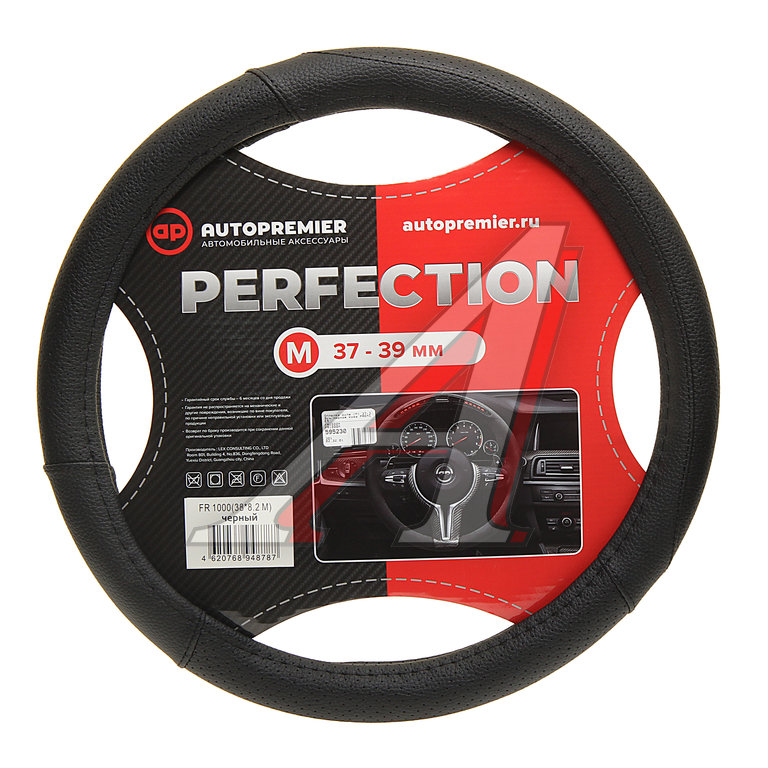 Оплетка руля (M) 37-39см черная кожа PREMIER
