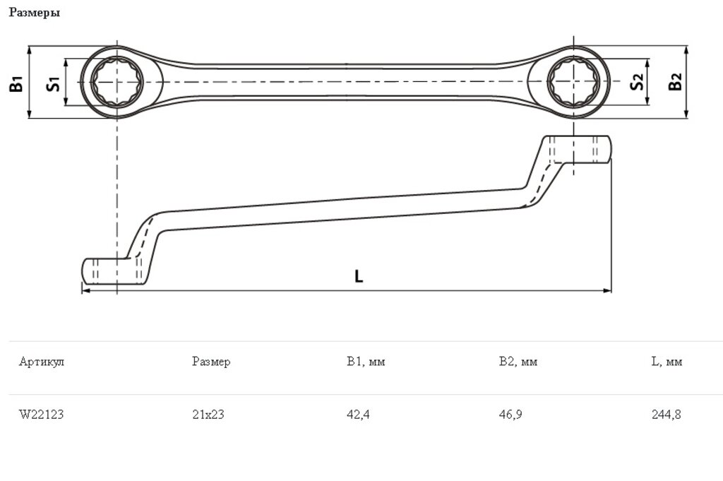 Ключ накидной 21х23мм коленчатый 75град. THORVIK