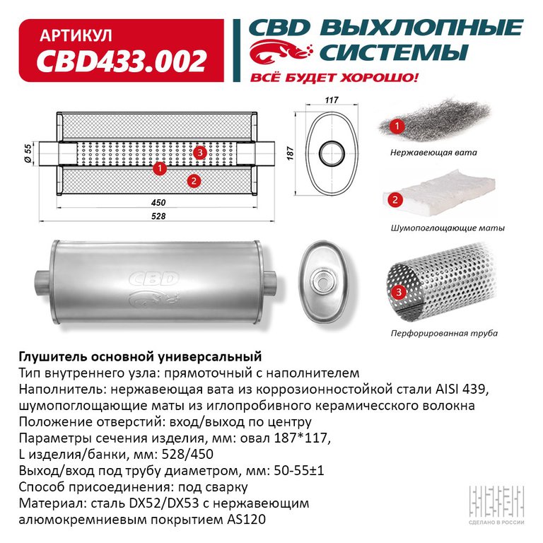 Глушитель универсальный овальный CBD