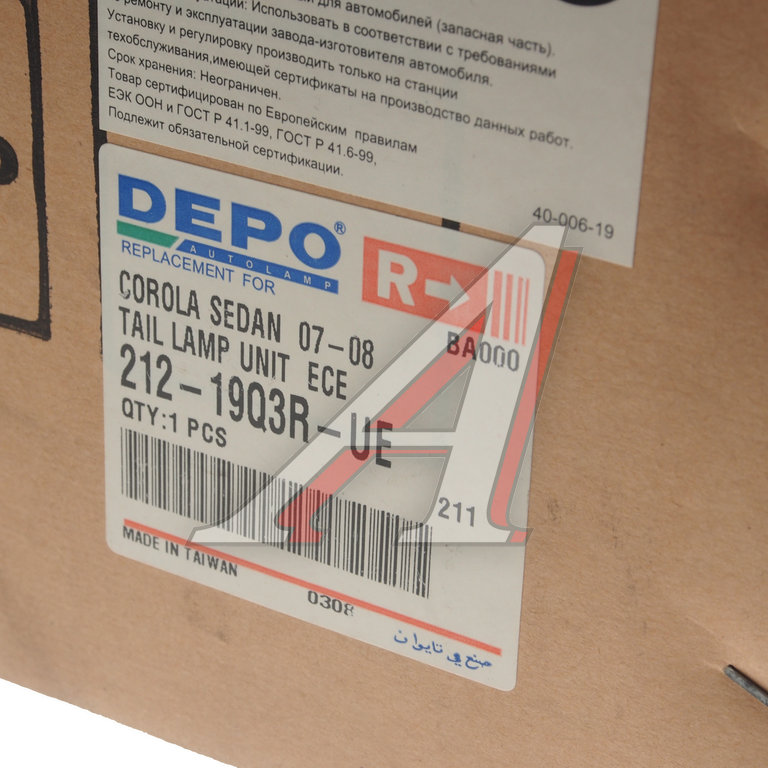 Фонарь задний TOYOTA Corolla (150) правый внешний DEPO