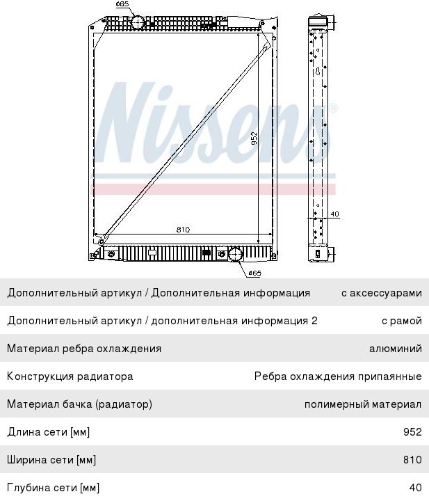 Радиатор MERCEDES Actros (952х810х40) NISSENS