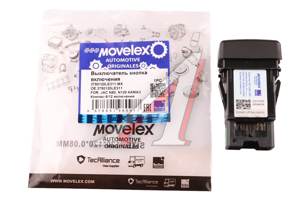 Выключатель кнопка JAC N80, N120 КАМАЗ Компас-9/12 включения КОМ MOVELEX